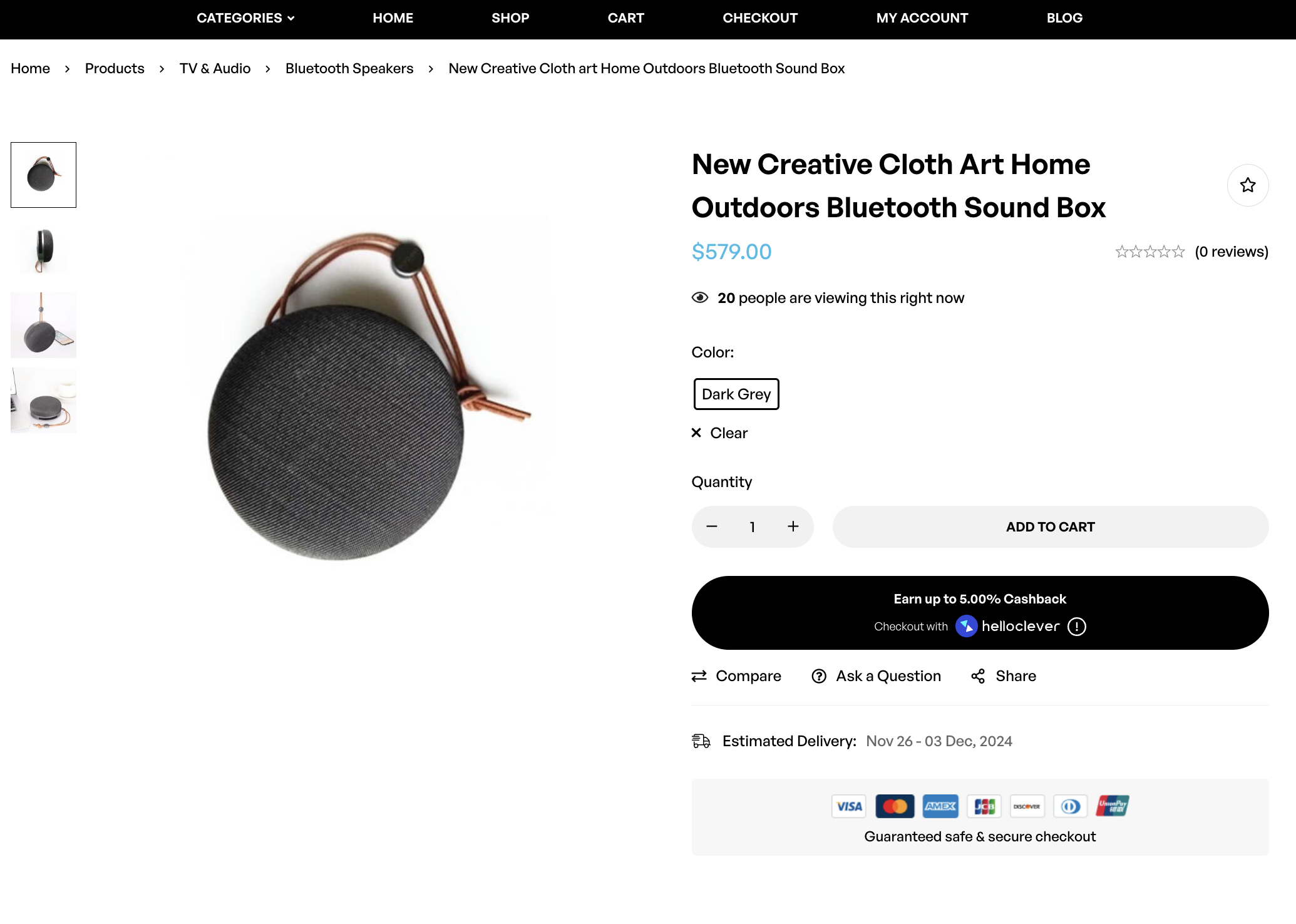 • Navigate to the product page of your choice on a WooCommerce store that supports Hello Clever.