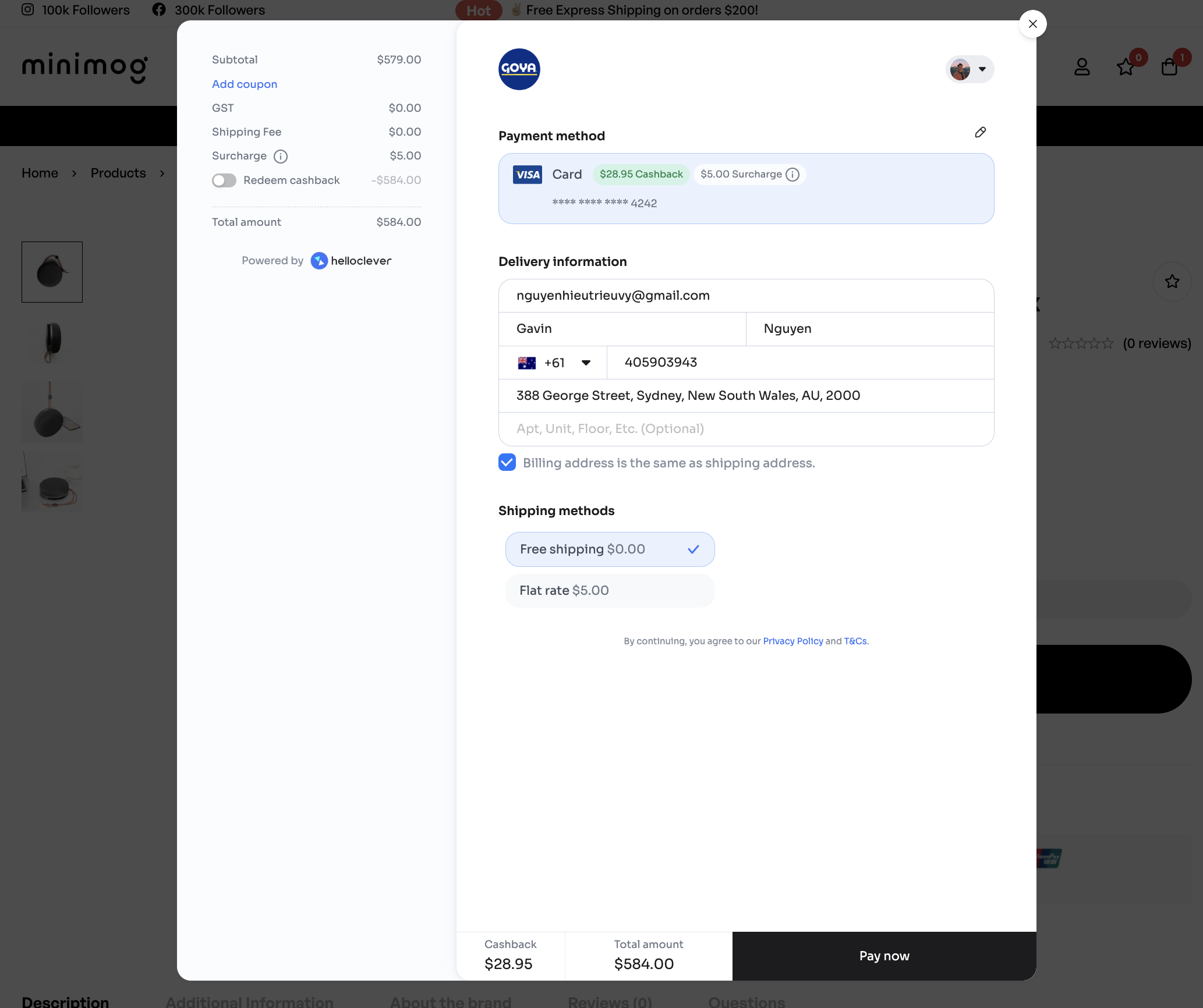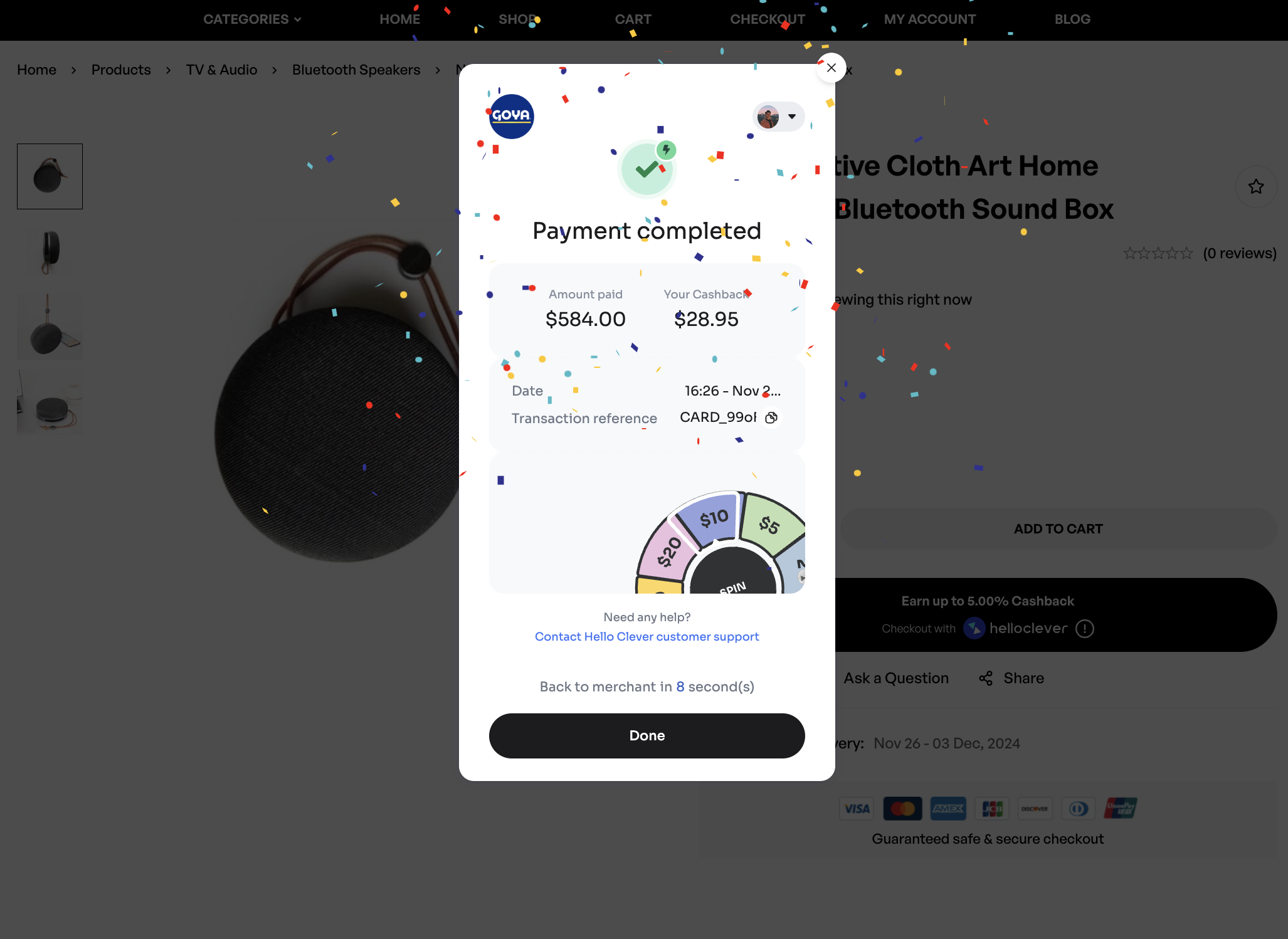 Hello Clever's Express Checkout provides a seamless and fast payment process designed to enhance customer experience. The entire checkout happens in a popup window, meaning customers remain on your website without navigating away. This feature is only available for WooCommerce stores. Follow the guide below to use Express Checkout effectively.
