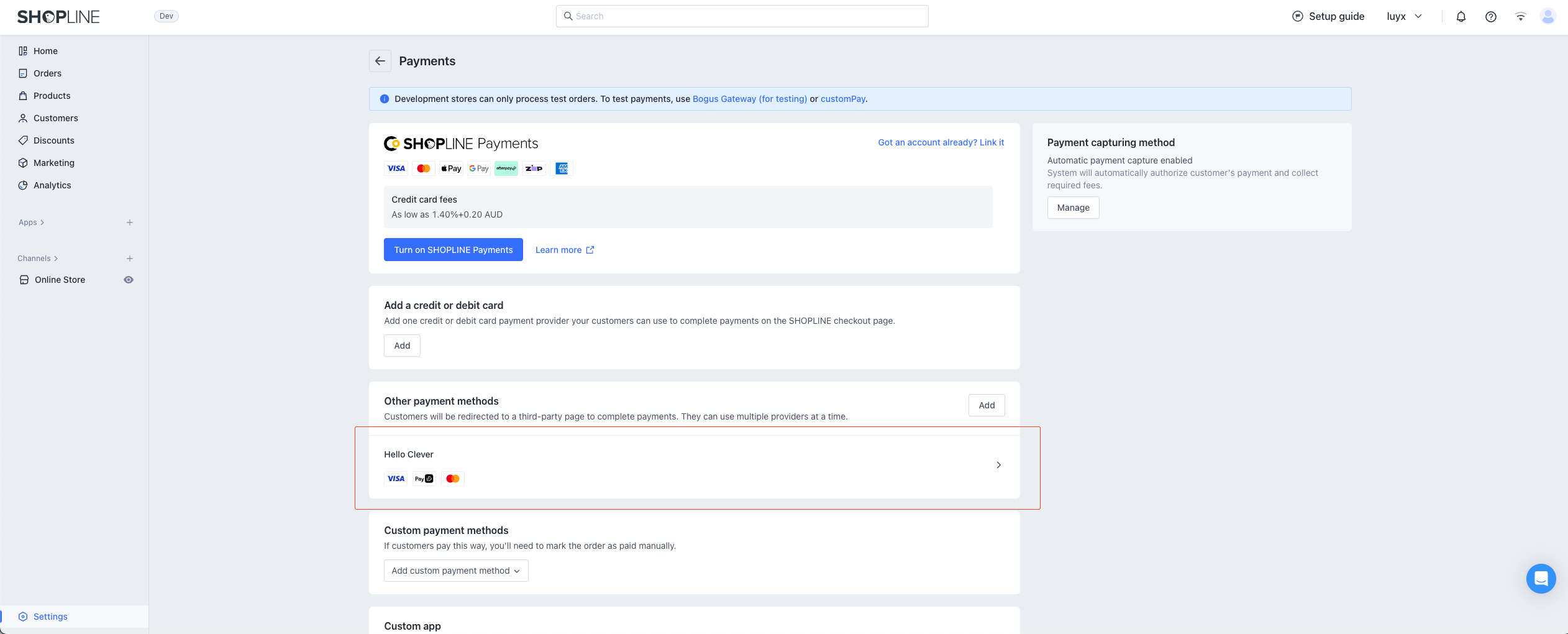 This guide explains how to manage and customise the payment options displayed on the checkout page for Hello Clever in Shopline.