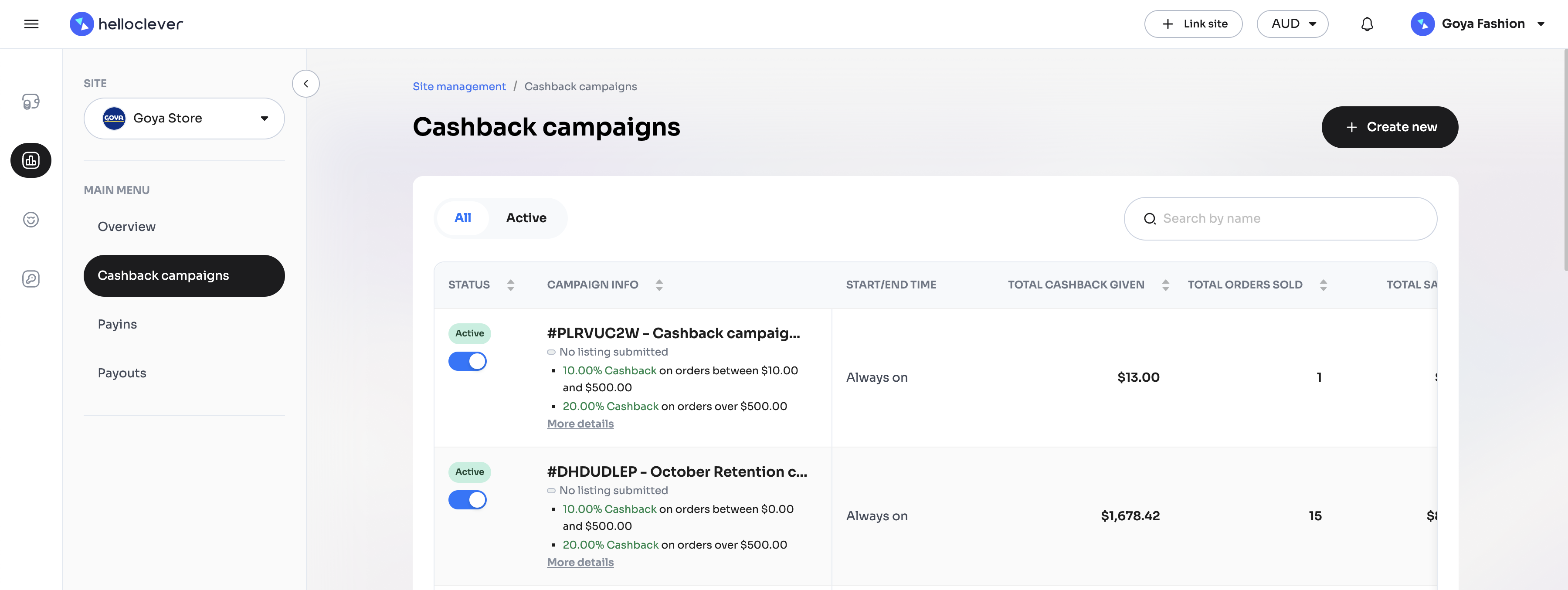 Managing your cashback campaigns effectively is key to ensuring they remain relevant and within budget. This guide covers how to view, update, deactivate, and update listings for campaigns in Hello Clever.